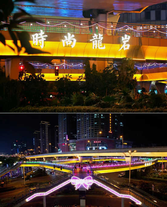 龍巖大道萬寶廣場人行天橋夜景文化工程完工