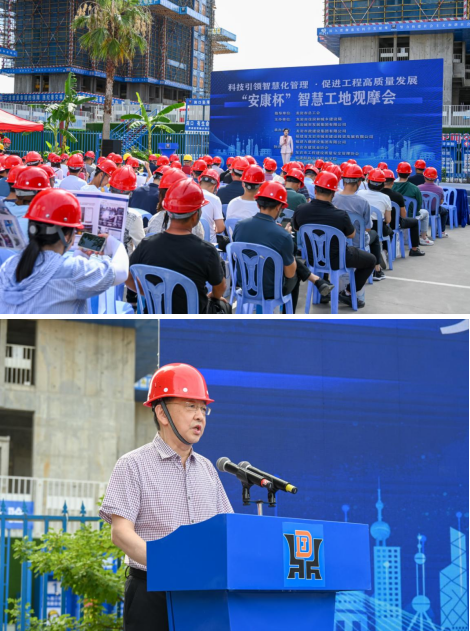 為推動(dòng)我市房屋市政工程智慧工地建設(shè),促進(jìn)建筑施工企業(yè)質(zhì)量安全管理標(biāo)準(zhǔn)化、信息化、智能化發(fā)展,7月20號(hào)上午,由市住建局和城發(fā)集團(tuán)主辦,市政集團(tuán)及福建九鼎集團(tuán)共同承辦的全市智慧工地觀摩會(huì)在龍欣小區(qū)安置房二期Ⅱ標(biāo)段項(xiàng)目舉辦,市住建局二級(jí)調(diào)研員王健蒞臨觀摩會(huì)致辭,市住建局、城發(fā)集團(tuán)及所屬企業(yè)相關(guān)工程技術(shù)人員約100人參加。觀摩會(huì)還吸引了來(lái)自龍巖市建筑業(yè)協(xié)會(huì)、龍巖市工程建設(shè)質(zhì)量安全管理協(xié)會(huì)、福建船政交通職業(yè)學(xué)院等有關(guān)專家到場(chǎng)指導(dǎo)。